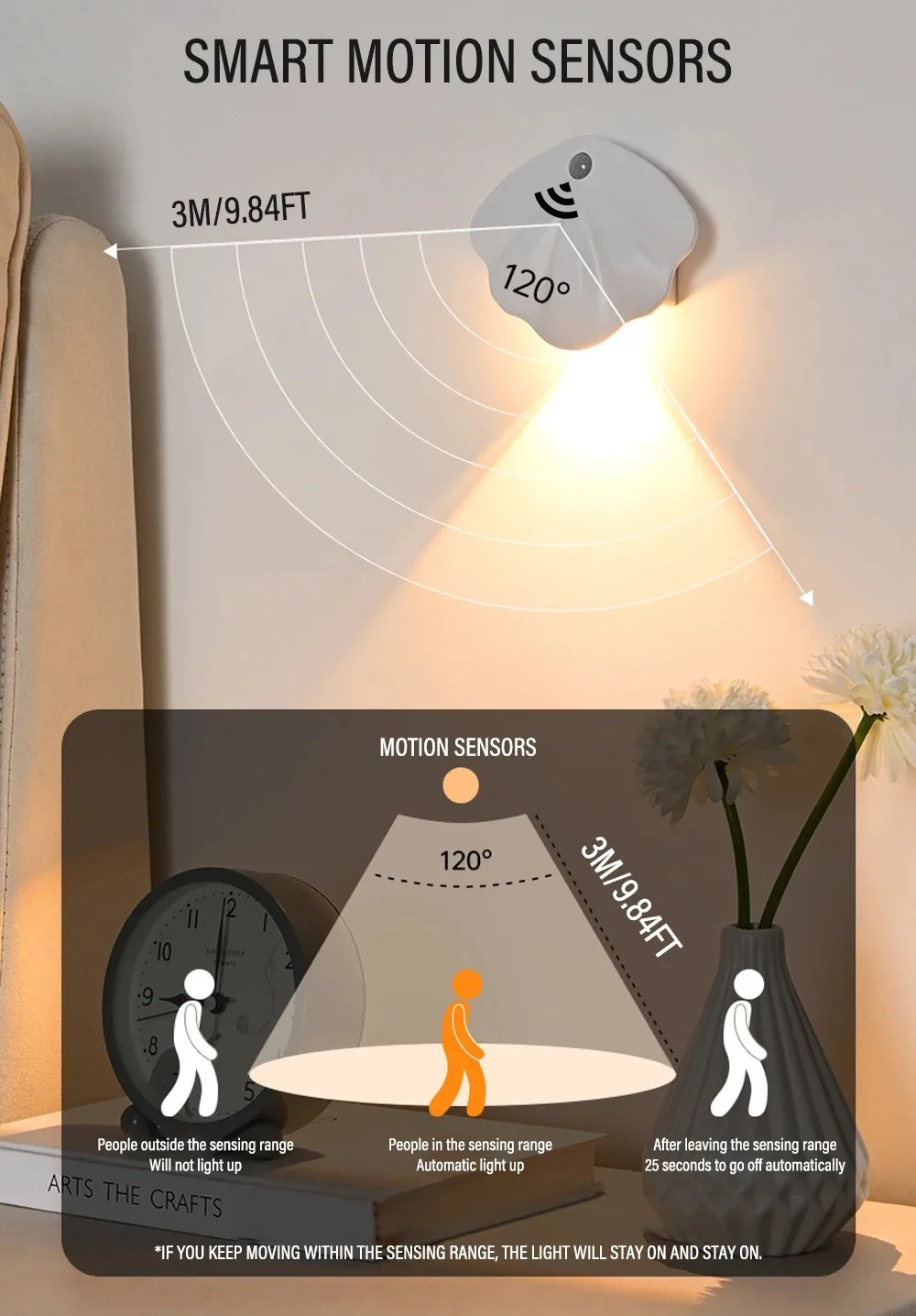 مصباح LED ليلي بمستشعر الحركة ، USB من النوع C ، ثلاثي الألوان ،